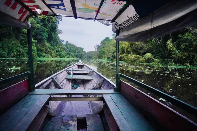 Die Organisation entstand 2012 aus einer Vision des indigenen Volks der Achuar, das entlang der ecuadorianisch-peruanischen Grenze lebt. Sie wollten ein emissionsfreies Boot bauen, geformt wie ein Fisch – in ihrer Sprache „Tapiatpia“. Zusammen mit Techniker*innen konstruierten sie das erste solarbetriebene Boot des Amazonasgebiets: ein schlankes Schnellboot mit Solarpaneelen auf dem Dach. Ein möglicher Beginn einer elektrischen Revolution auf den Flüssen des Regenwalds?